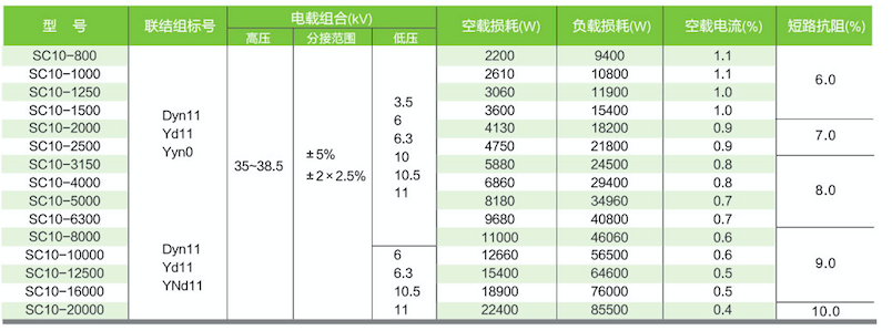 SC(B)10型35kv主要性能參數(shù):