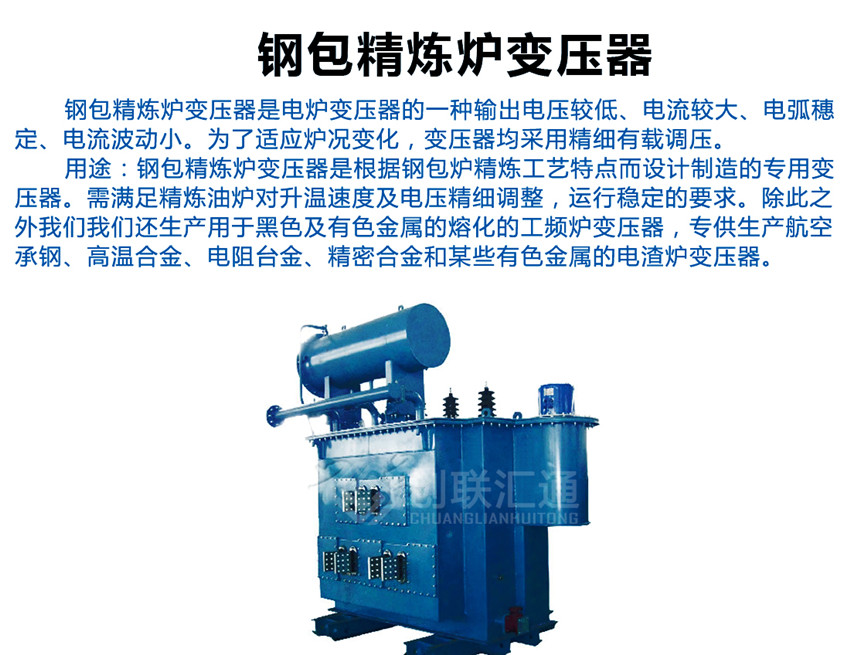 鋼包精煉爐變壓器是電爐變壓器的一種輸出電壓較低、電流較大、電弧穗定、電流波動(dòng)小。為了適應(yīng)爐況變化,變壓器均采用精細(xì)有載調(diào)壓。