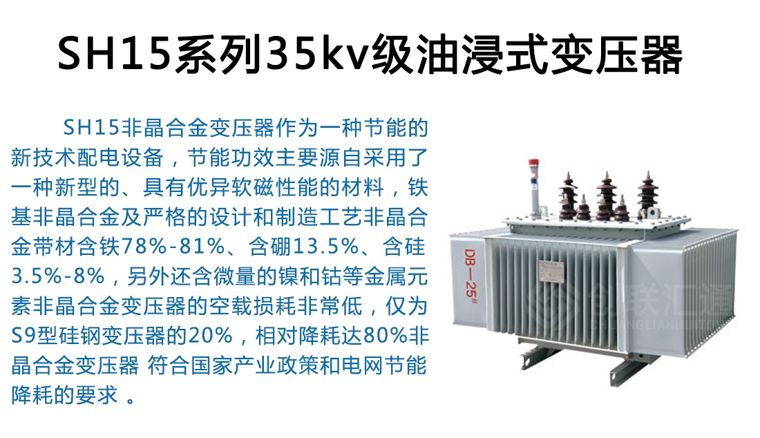 通過該種規(guī)格產品的計算可知,三相非晶合金鐵心配電變壓器系列產品的節(jié)能效果非同一般。由于油箱又設計成全密封式結構,使變壓器內的油與外界空氣不接觸,防止了油的氧化,延長了產品的使用壽命,為用戶節(jié)約了維護費用。